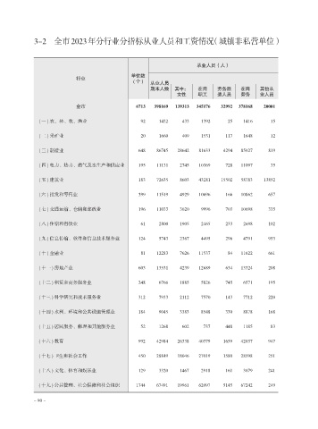 3-2 全市2023年分行业分指标从业人员和工资情况(城镇非私营单位)