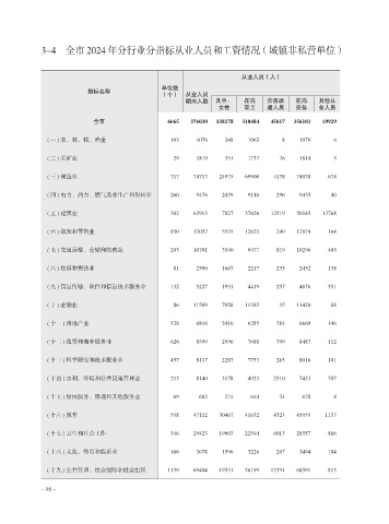 3-4 全市 2024 年分行业分指标从业人员和工资情况(城镇非私营单位)