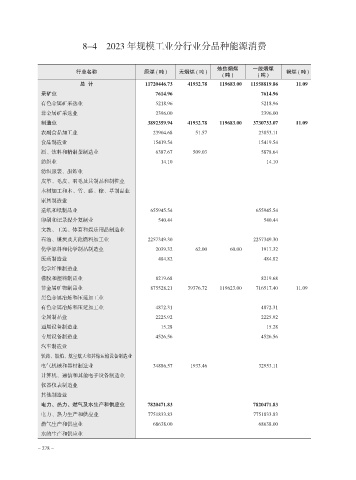 8-4 2023 年规模工业分行业分品种能源消费