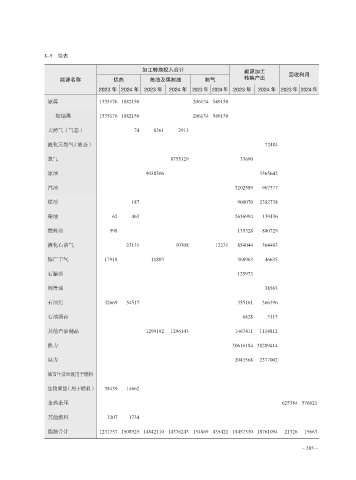 加工转换投入合计 能源加工 回收利用