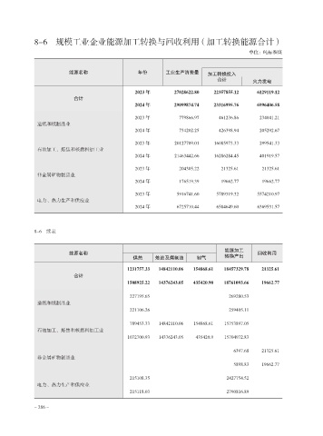 8-6 规模工业企业能源加工转换与回收利用(加工转换能源合计)