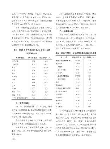 国家和地区 出口额(亿元) 比上年增长(%) 指 标 绝对数(亿元) 比上年增长(%)