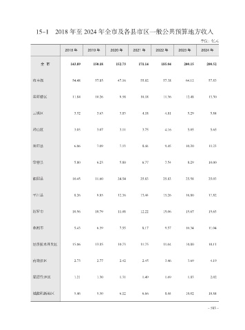 15-1 2018 年至 2024 年全市及各县市区一般公共预算地方收入