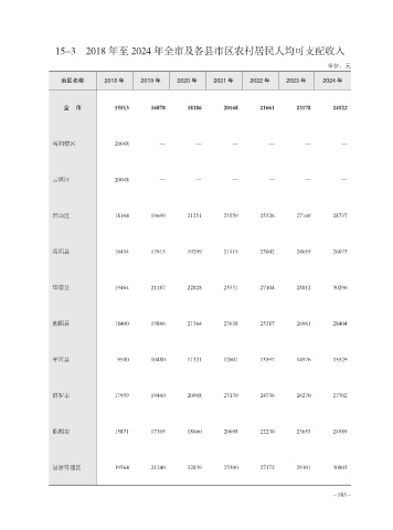 15-3 2018 年至 2024 年全市及各县市区农村居民人均可支配收入