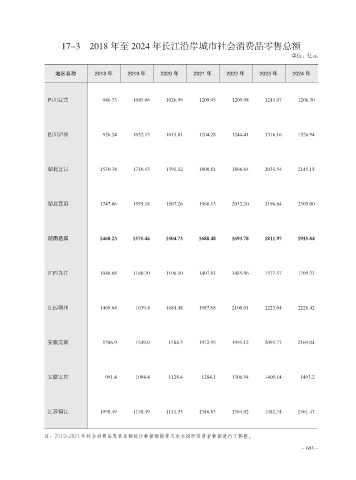 17-3 2018 年至 2024 年长江沿岸城市社会消费品零售总额