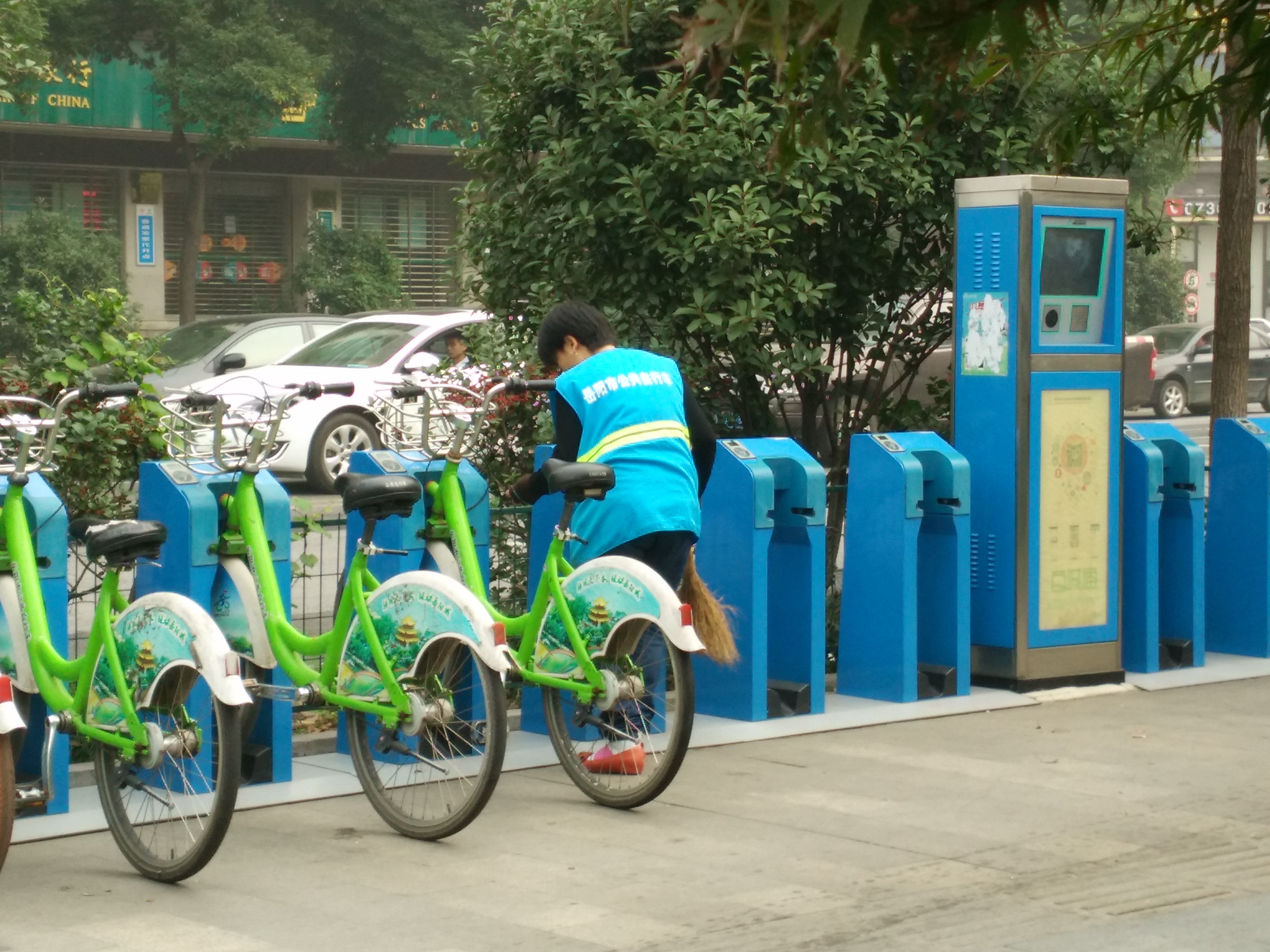 在多家共享单车运营公司宣布破产,多个城市因共享单车乱停乱放堵塞交通成灾的大环境背景下。岳阳市城市公共自行车运营有序,显示出了管理单位和监管点位较高的管理水平,市民特写此信赞扬。 体验感受:1.每天早晨都会看到穿着整齐工作服的维护人员清扫停车桩和单车;2.遇到了停车位不足时,拨打服务中心电话,值班人员会第一时间查找最近停车桩的空位,指导停车;3.每天夜间有工作人员开货车,将停车桩过多的自行车挪到停车较少的停车桩。4.我会看到共享单车更换零部件,侧面反映了自行车在定期维护。 我早晨路过大润发共享单车停车桩,看到勤劳的工作人员穿着整齐的工作服,在清晨的寒风中清扫。拍下了照片,并写下此文。 感谢工作人员的辛勤劳动!感谢监管单位高水平管理! 附件1:uploadfiles/201711/20171124153048928.jpg |