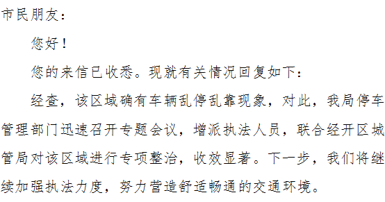 1.各种小汽车乱停乱放很严重没人管,尤其占用人行道现象非常严重,北港路很严重。有些车辆满车尘土可见是长期停放。 2.热盼交警长期上路执勤! 3.华润天然气公司报修服务人员少,因忙不能很好为用户服务。其主动为用户上门服务为零。 |