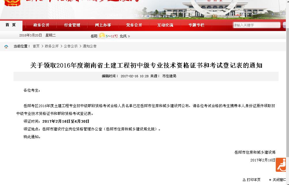 2017年全省土建工程初中级职称考试早已结束,岳阳市合格人员名单也在政府网站公示近两个月了,到现在还没有发证。长沙市2017年的证在春节前已经下发,前年(2016年)岳阳市的土建工程初中级职称证书2017年2月16日就可以开始领取,为什么今年就那么迟?打电话咨询过岳阳市建设行业岗位资格管理办公室,一位男性工作人员告诉我,这个证书要与人事局一起发,涉及两个部门协调,不可能那么快,什么时候能发证还说不好。那我想请问土建工程职称证书考试操作了十几年,两个部门还有什么难以沟通协调的问题吗?去年岳阳的证书为什么能发这么早?这个证书涉及到专业技术人员工资晋级等切身利益,拜托请重视一点不要那么无所谓好吗?