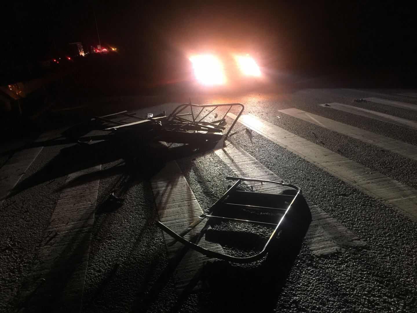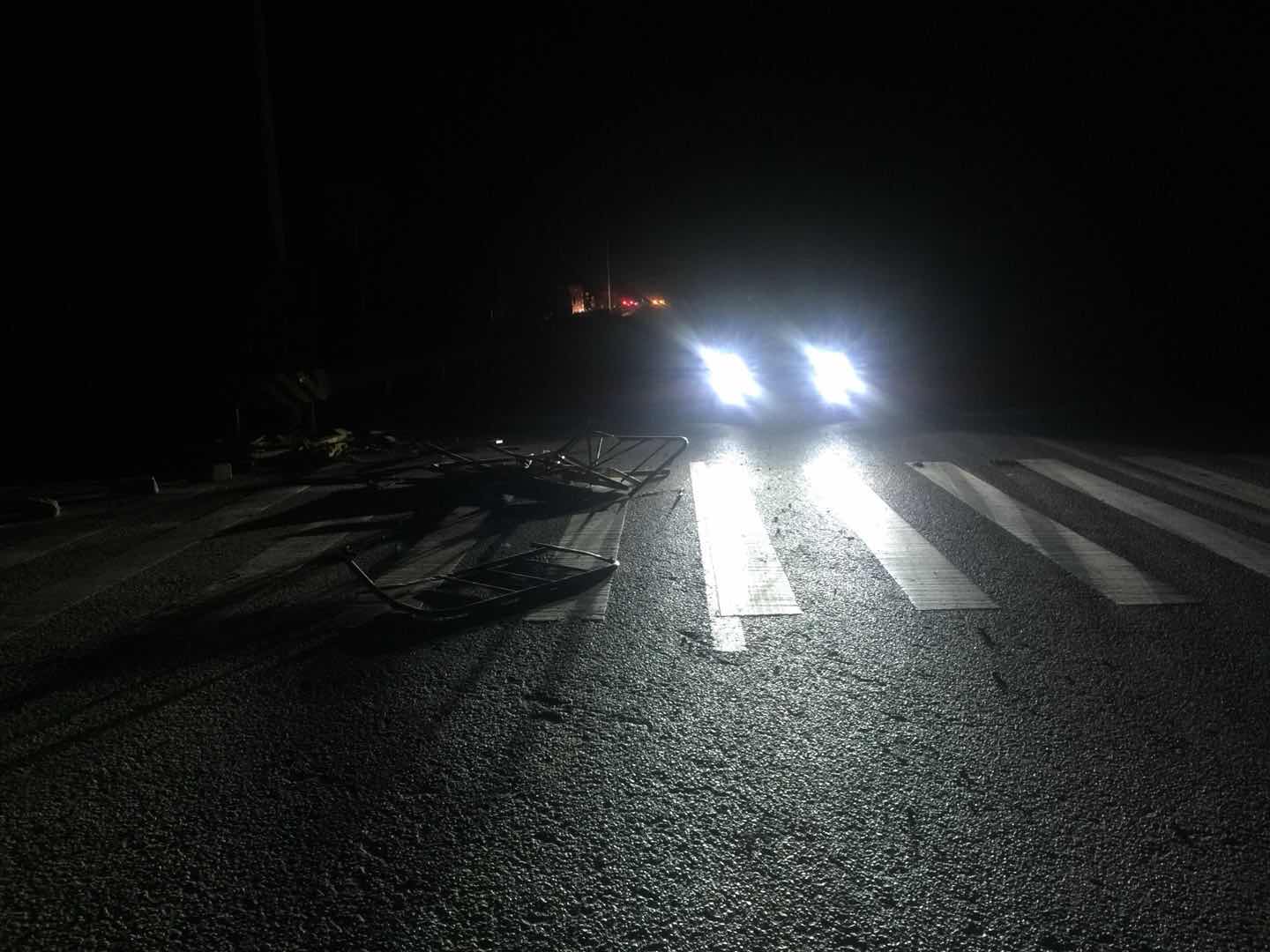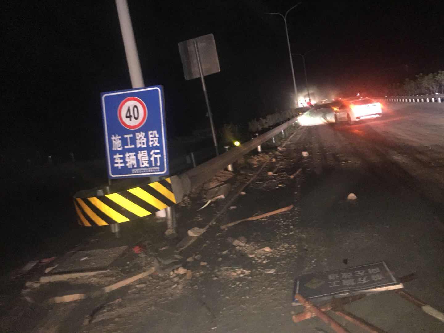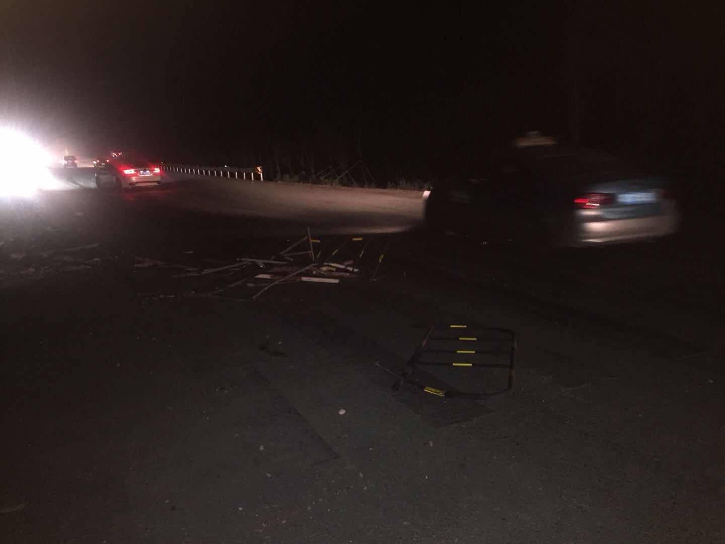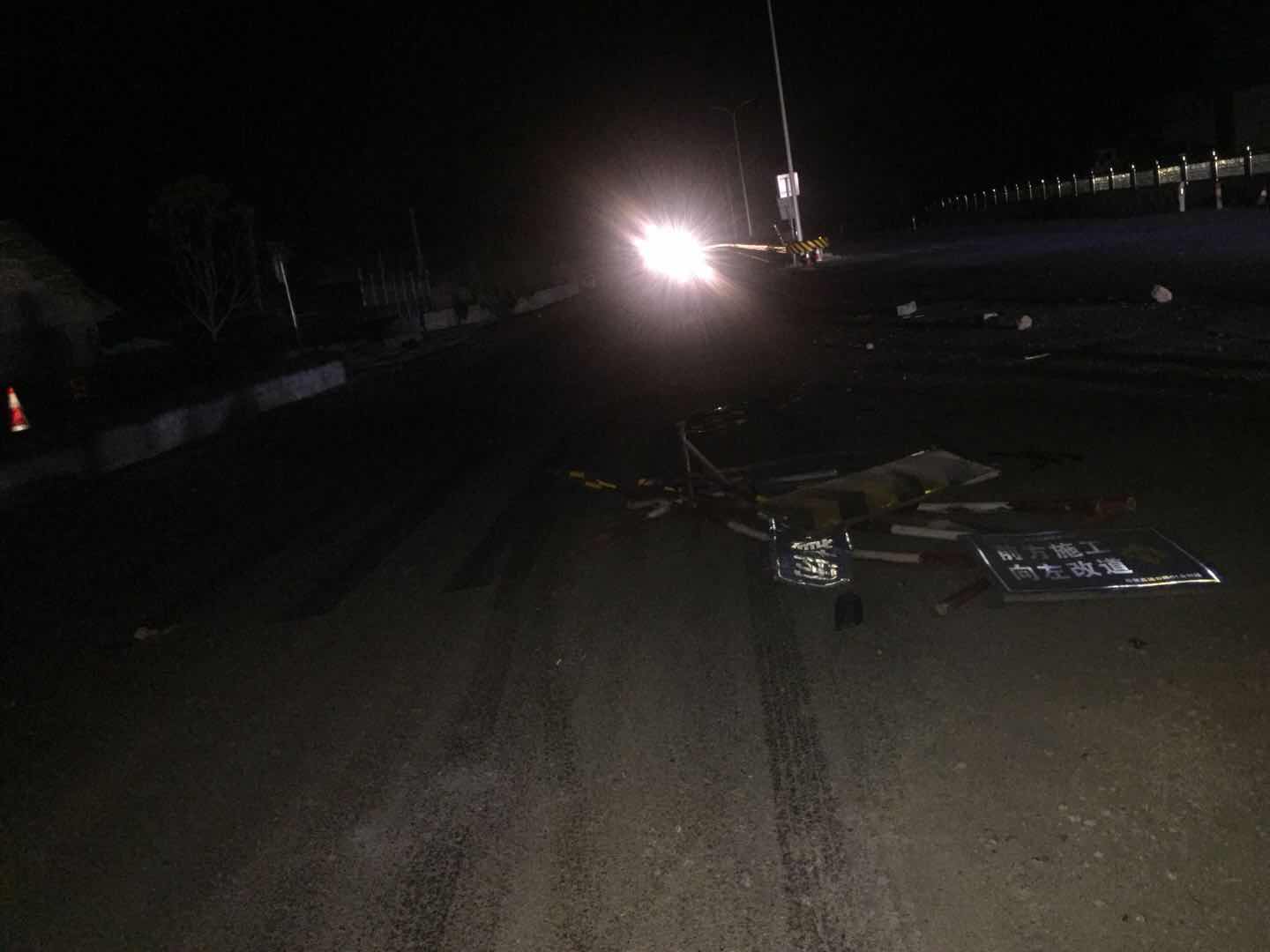 您好,2018年6月18日晚上十点多刚过完端午节载着弟弟一家人及自己小孩从长沙市经湘阴县走G240国道回岳阳,大概是零点多的时间经过岳阳县G240跨线桥(下面是S61岳临高速公路)发生碰撞事故,幸亏未直接撞上道路上的障碍物(此障碍物为变形的钢管围栏及标牌,一团摆在路中间,导致我避让不及,撞上去把左前保险杠刮坏、雾灯框破裂、雾灯耳断裂,现场情况可以查看照片,因时间是凌晨,我也未报警),车上人员小孩受到惊吓。我不知施工单位是怎么履行安全文明施工的,右半幅未通车,但是没有绕行左半幅的指示标牌,右半幅未进行封闭,路上有变形的障碍物也未及时清理,这样很容易造成车辆人员伤害。这也是施工单位对安全文明施工不够重视的体现,极大的危害到群众的人身安全。还请领导督促施工单位做好安全文明施工,避免再发生类似事件。
