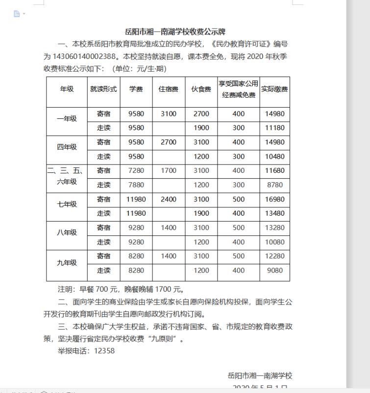 本市湘一南湖学校近日展开了2020年秋季新学期招生的相关活动(例如:一年级新生家长见面会、一年级新生面试等),根据择优录取及自愿就读原则,公布了该校下半年的收费标准。作为与长沙市一中联名合办的新学校,我们家长还是比较关注,而对于该校的办学理念及硬件设施、老师师资等也比较认可。但看到该校自2017年正式招生以来,学费逐年递增,特别是今年幅度较大,且不同年级有不同的收费标准,心存疑虑如下: