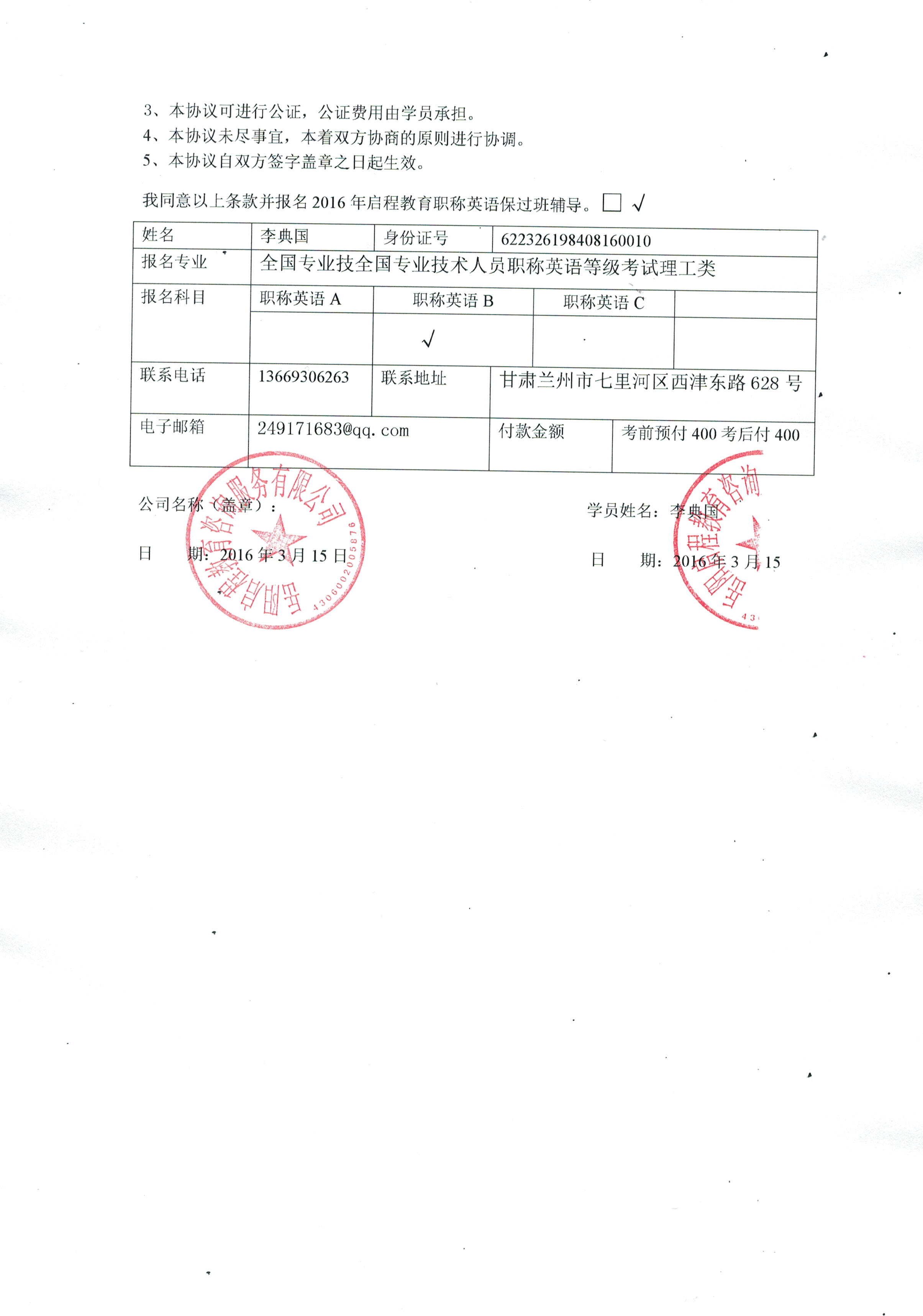 | 写 信 人: | 李典国 |