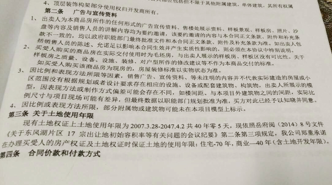 尊敬的市领导:您好!我是一位圣大珑庭的业主,因6月底要交房了,现在就土地权限的问题有点问题想咨询下。土地证号为岳市国用(2007)第K038号,合同上注明使用年限为40年,但在合同补充协议上,开发商承诺,住宅在房产证和土地使用证上的期限为70年,商用为40年,而依据是 岳府阅(2014)8号文件《关于东风湖片区17宗出让土地初始容积率等有关问题的会议纪要》第二条第三条规定。不知道这份文件文件有没有提到土地使用年限的问题。如有,那么开发商承诺的70年期限能否实现。如没有,那么开发商是不是存在欺诈行为。期盼您的回复!谢谢!