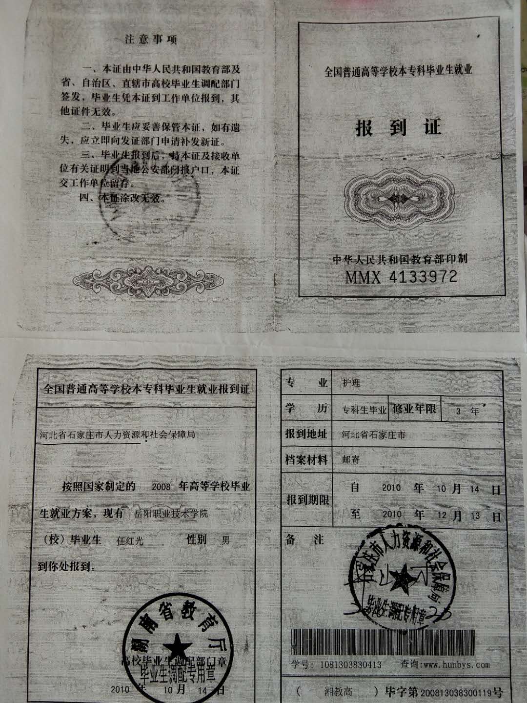 | 内容: | 尊敬的领导: 我是2008.6月毕业于岳阳职业技术学院的一名学生,2008.4月至2010.10月27就职于岳阳市二人民医院,档案自毕业以后就一直放在贵处,2010年11月就职于河北平山县医院,档案一直未动,一直放在贵处,直到辞职(2010.10.27)才去开具报到证,报到期限是2010.12.13日,并且我已在规定日期报到(2010.11.20),档案2012年才调回来,2013.1.23在平山县人事局办理人事代理,期限一年,2014年4月办理事业单位关系,但档案里面缺少转正定级审核表及相关资料,所以想问下能否补办转正定级?补办需要带什么材料?因为离得较远,所以想详细问下,恳求领导积极协调处理,谢谢领导!!! 附件1:fb5c2714f6d6af4c8fa23e9c3211d05.jpg |